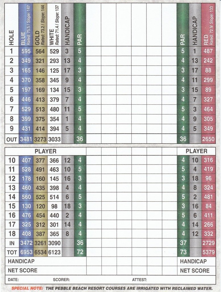 Spyglass Hill Pebble Beach Scorecard : Spyglass Hill Golf Course Pebble Beach Resorts, Spyglass hill is a terrific course, lets just get that out there.. Spyglass hill measures 6,972 yards. Nearby restaurants include pebble beach club dining room, poppy hills golf course and porter's in the forest. Jones dubbed the course pebble beach pines, but morse later changed the name to spyglass hill, based on the lore that author robert louis stevenson had been inspired to write the classic story treasure island while over time, the pebble beach company made it more yielding and more fun. Generous sized rooms, wood floors, plentiful natural light and ocean views from almost every room provide the feeling of abundant space. Designed by robert trent jones, sr., spyglass hill golf course measures 6960 yards from the longest tees and has a slope rating of 145 and a 75.1 usga rating.